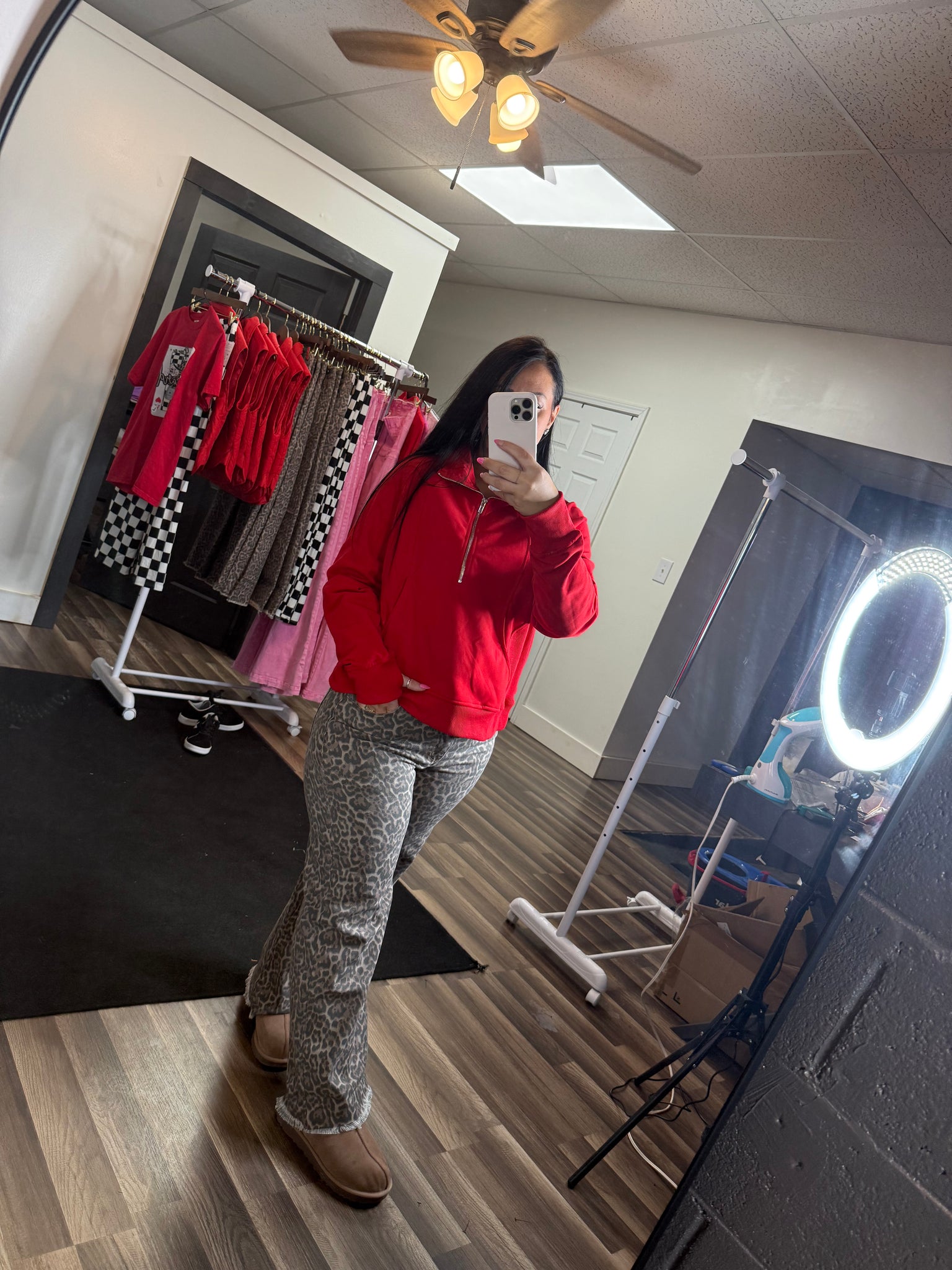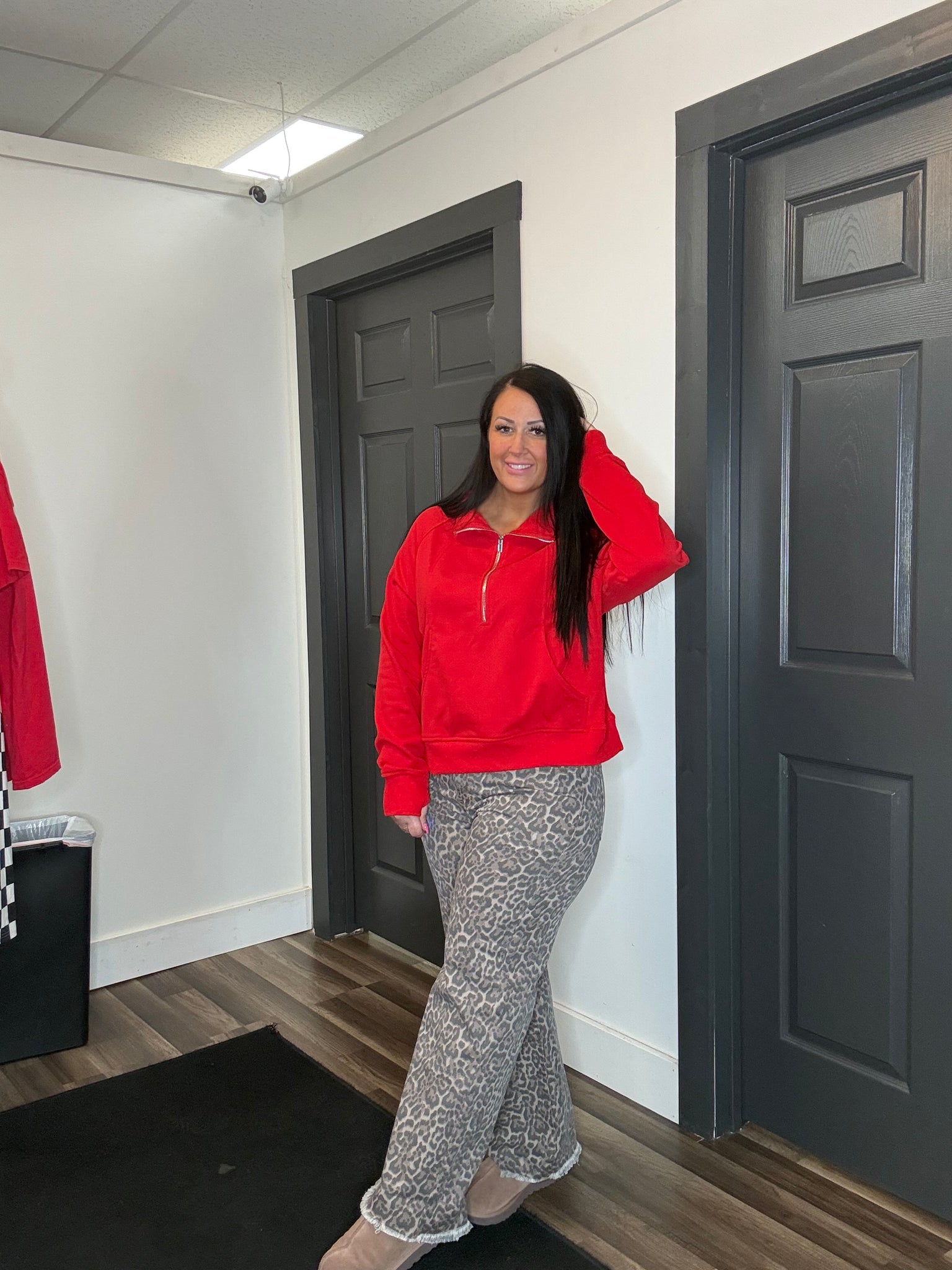 Step into bold style with these wide-leg jeans that blend classic denim comfort with a wild leopard print twist. The high-waisted cut flatters your silhouette while the frayed edges add an effortlessly cool, lived-in vibe. Crafted from a breathable cotton-blend fabric with just enough stretch to keep you moving, these statement pants are perfect for anyone ready to turn heads. Mix them with basics or go full pattern-play—either way, you're serving serious style.